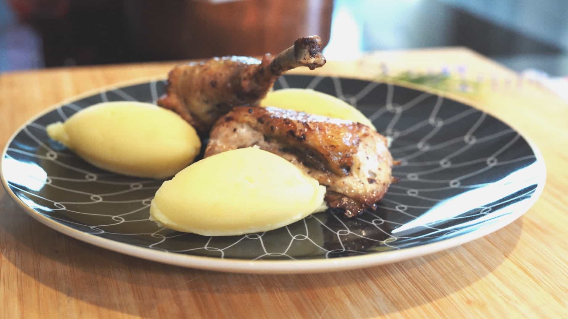 In the meantime we will have boiled the potatoes in plenty of salted water. Crush the boiled potatoes and “mount” them with wire oil.