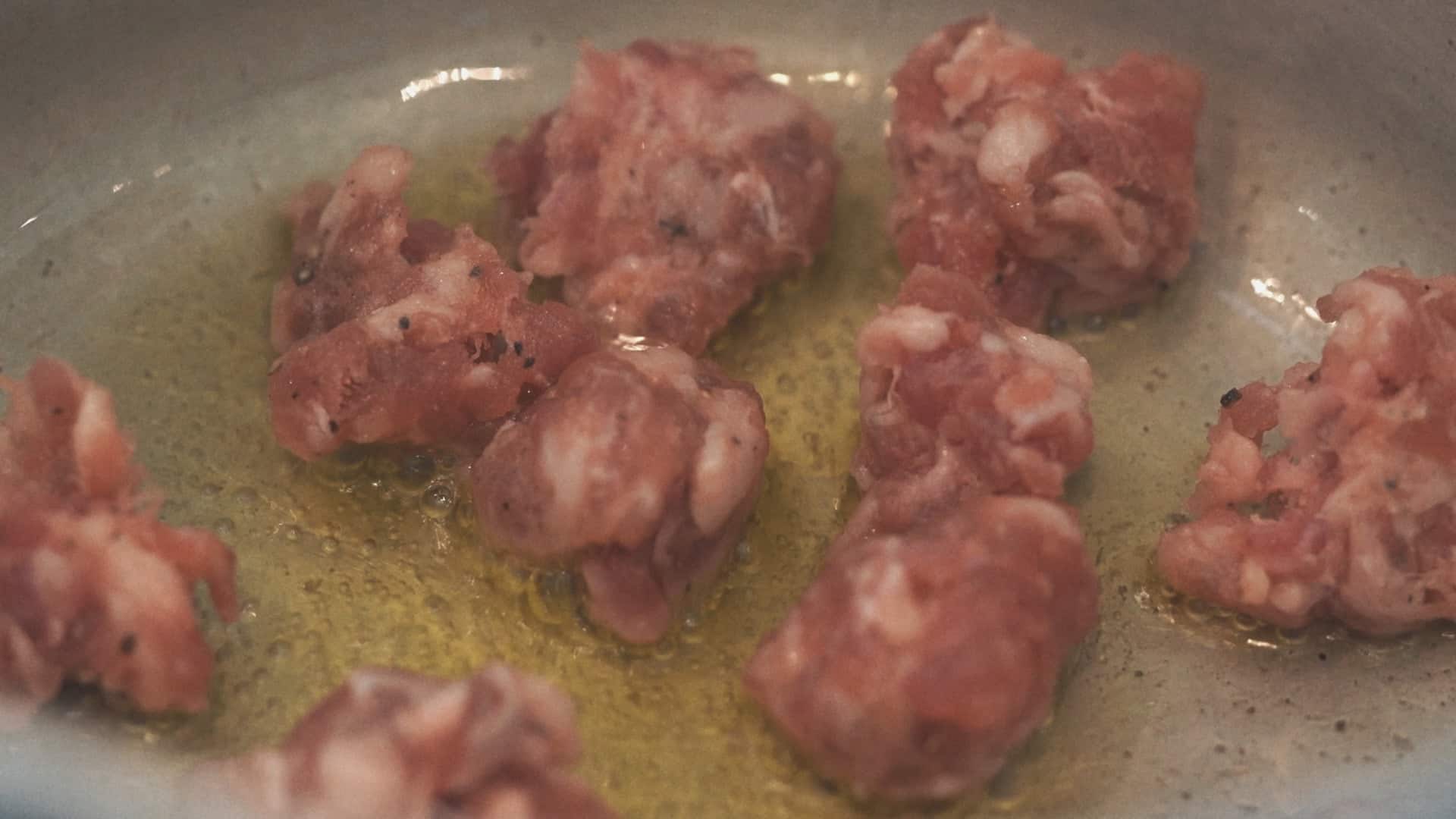 Fry the sausage in to pieces with a little extra virgin olive oil [4].