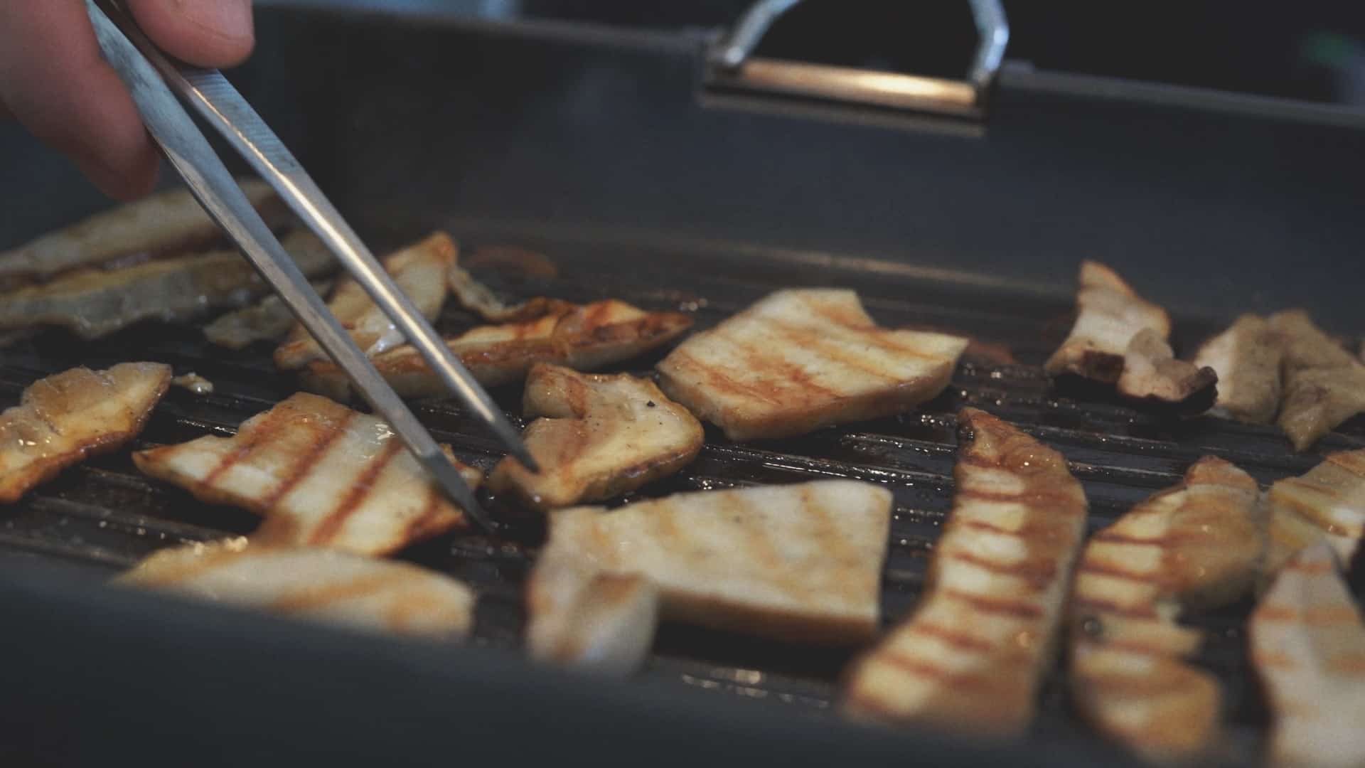 Roast the sliced frozen porcini mushrooms on a hot plate with a little extra virgin olive oil [5].