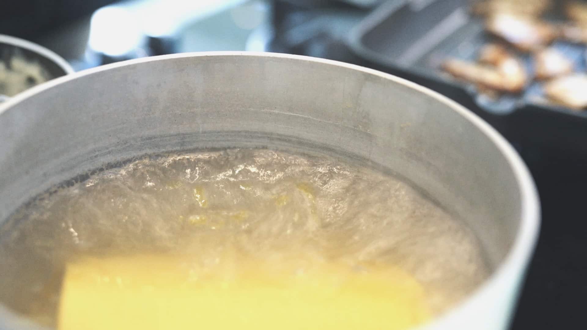 When all the toppings are ready, roll out the dough first with a rolling pin and finally, to have a thin pastry, with a sheeter [6]. Cut rectangles and cook them in boiling salted water and with a drop of extra virgin olive oil, which will serve to prevent you from sticking the sheets of dough together during cooking [7].